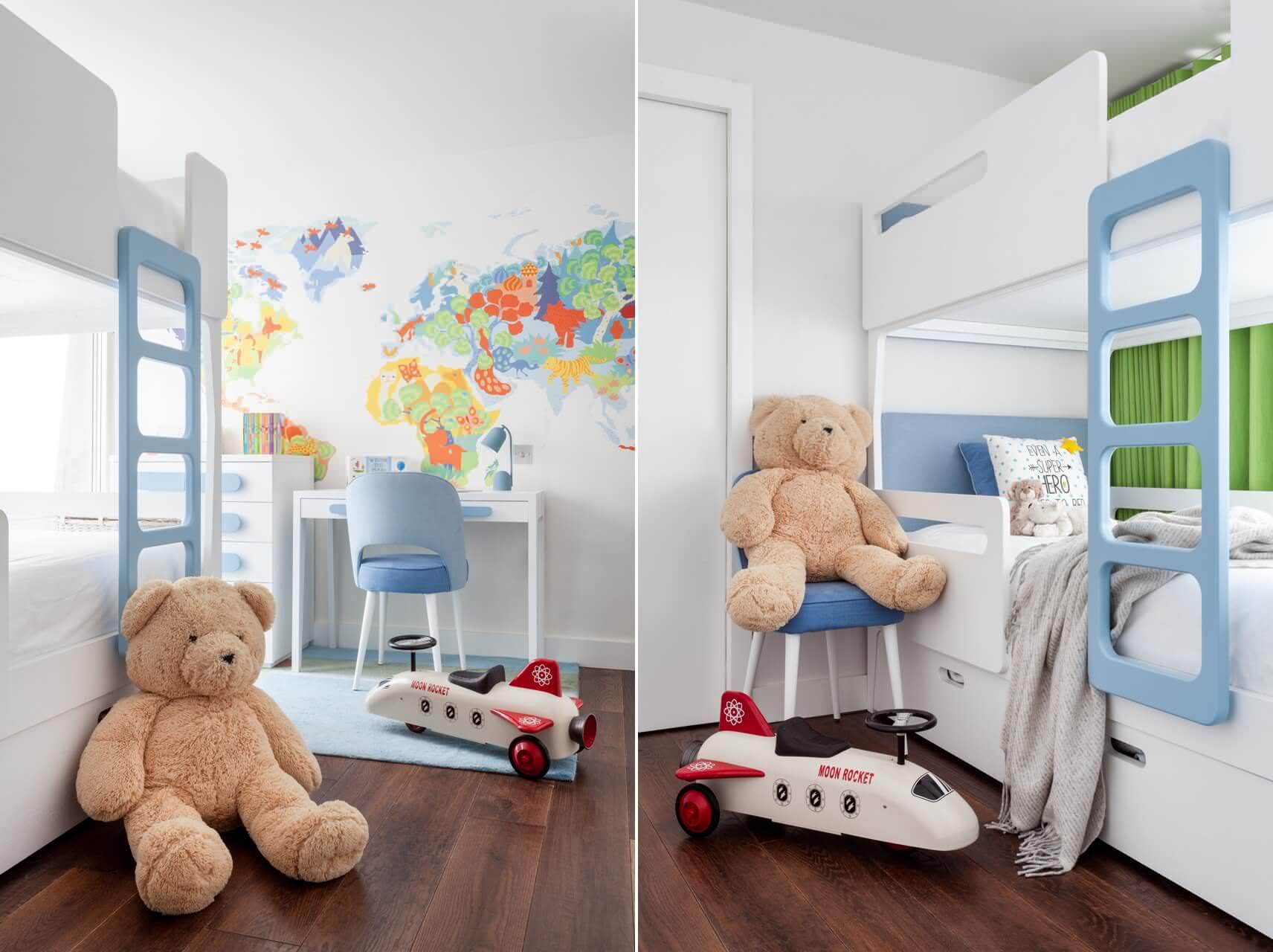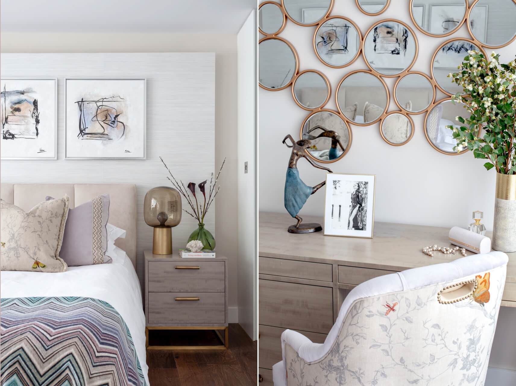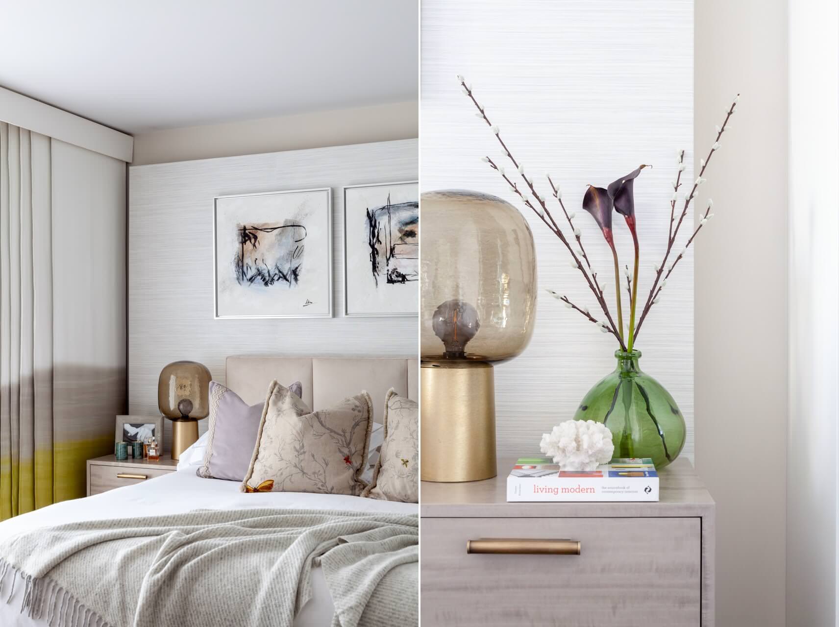 Atelier KV Interior Design and project management team undertook the complete renovation of a luxury apartment in Canada Water. The entire footprint of the property was reconfigured from a two to a three bedroom apartment to maximise the practical needs of the owners, whilst simultaneously creating a light-filled and contemporary open plan living space in which the family could relax and enjoy incredible views of the Thames and London landscape. A calming colour palette was used as a base for the scheme whilst pattern, texture and bold detailing was added to create dynamic interest. Specially commissioned furniture handcrafted by our expert team of artisans in Portugal make for a truly stylish and inviting home.