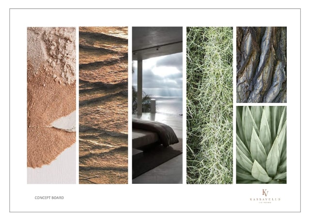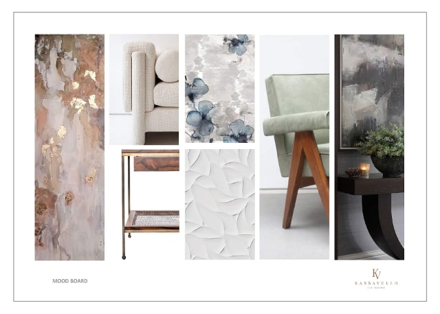 Our team create an initial concept board – a curated collection of images that conveys the colours, shapes, textures and emotional ambience of the intended scheme.